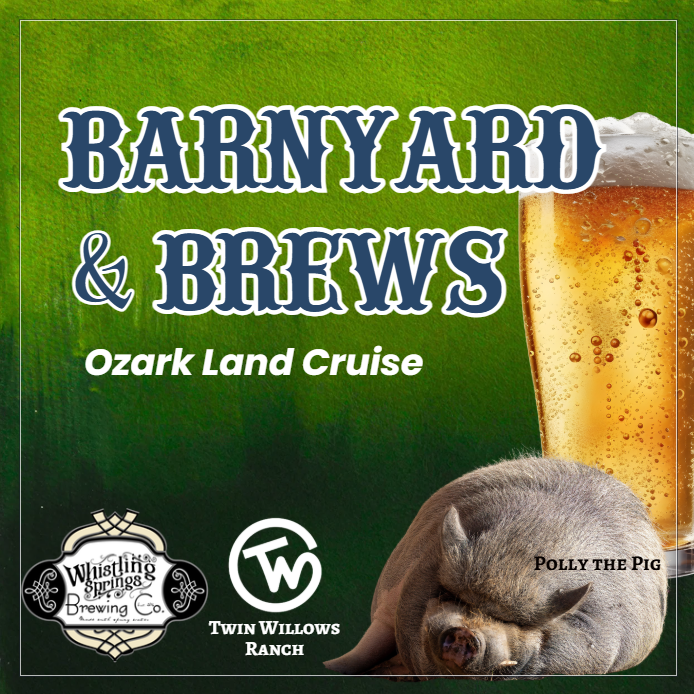 SPRING SPECIAL - Enjoy a true Ozark escape to Whistling Springs Brewing Co. and Twin Willows Ranch! Your fare includes light snacks, pond fishing and petting zoo access. While you're there, enjoy pay-as-you-go horseback trail rides, brick-oven pizzas, and craft beers, ciders, or nonalcoholic sodas!